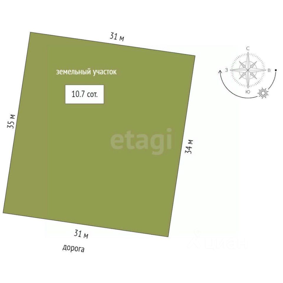 Размеры участка 31 м х 34 м позволяют создать уютное пространство для вашего будущего дома. Электричество уже проходит по границе участка, газ доступен на улице, а для водоснабжения вам потребуется пробурить скважину. Дорога к участку укатана щебнем, что гарантирует комфортный подъезд в любое время года.