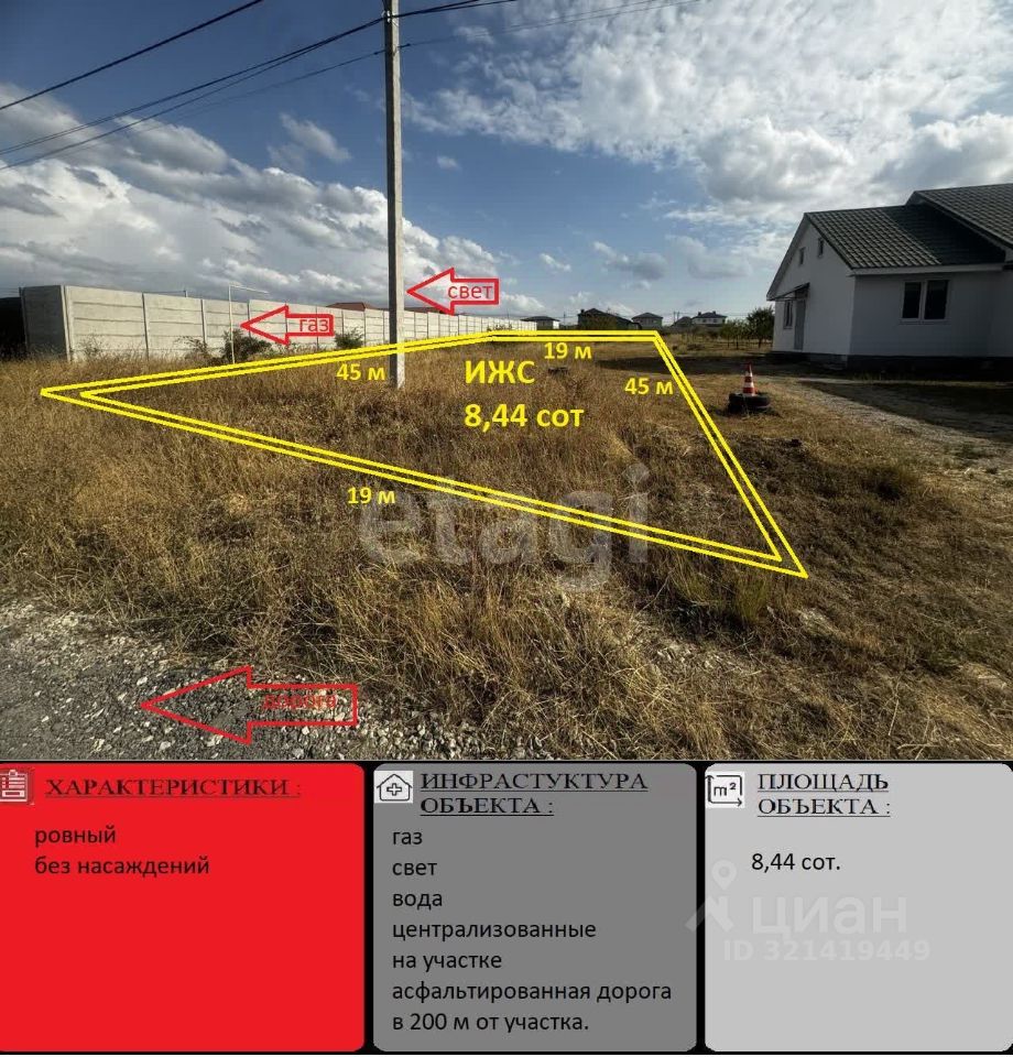Предлагаем вам участок площадью 8,44 сотки в живописном посёлке Айкаван, расположенном всего в нескольких километрах от Симферополя. Это идеальное место для строительства вашего дома мечты! Все коммуникации электричество, газ и вода проходят по границе участка, что значительно упростит процесс подключения. Удобная грунтовая дорога, отсыпанная щебнем, обеспечит легкий доступ к вашему новому участку.