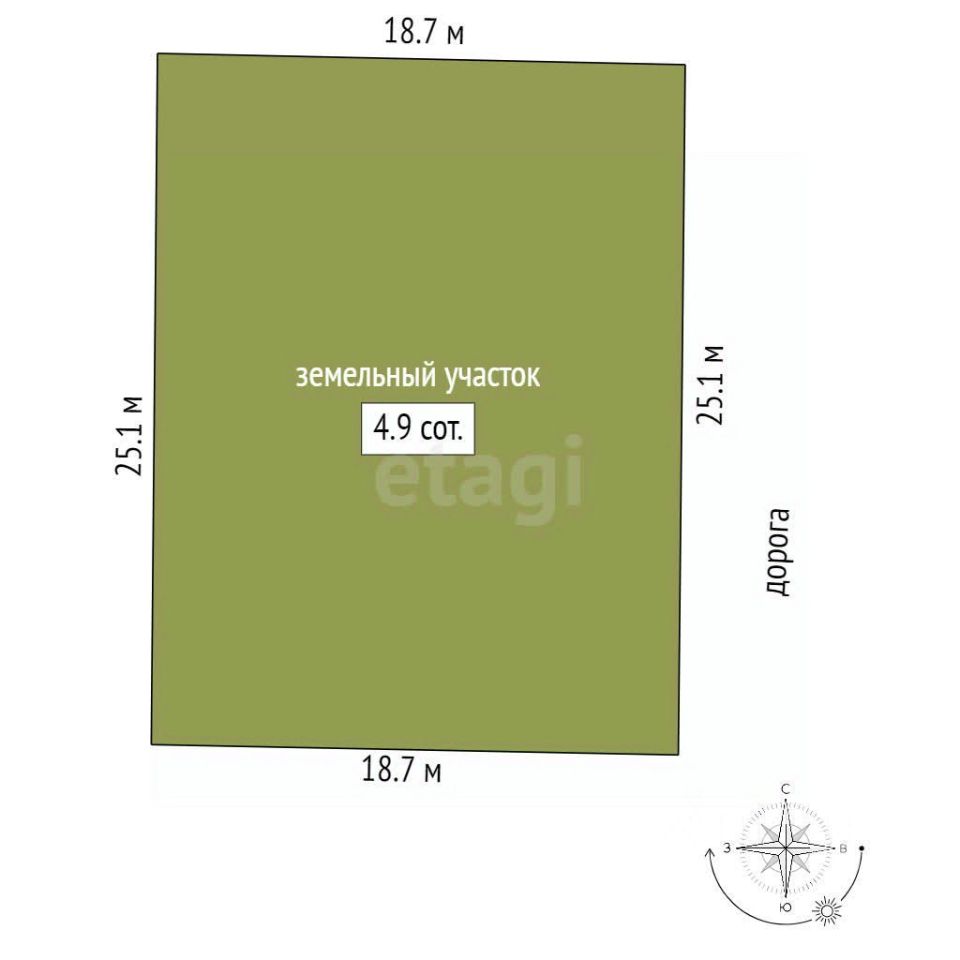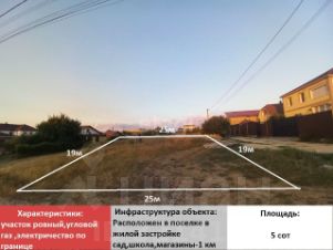 Площадь участка 4.9 сот, правильной формы,коммуникации по границе участка.