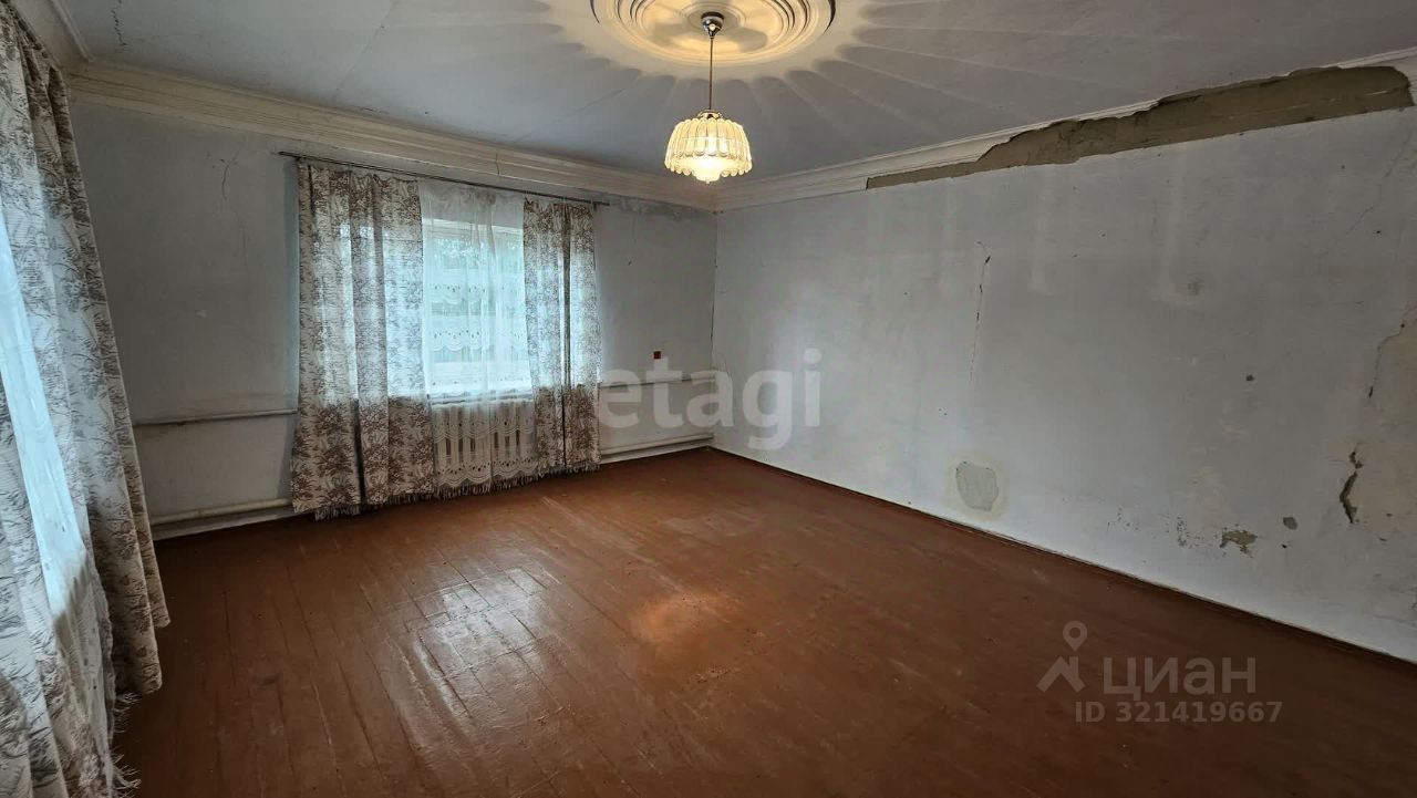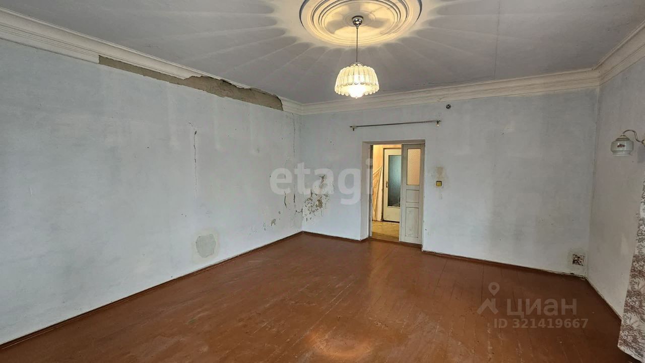 В доме 2 этажа, второй этаж без отделки, оформлен как чердак. На первом этаже 4 комнаты, кухня, санузел совмещенный, коридор, прихожая. Высота потолков свыше 3 метров. Требует частичного ремонта. Во дворе плодовые деревья.
