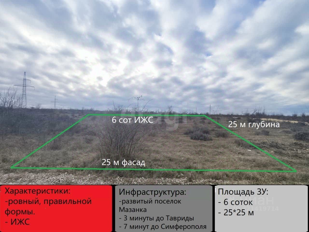 Продается земельный участок, Симферопольский район, на территории Мазанского сельского совета, в южной части с.Мазанка.