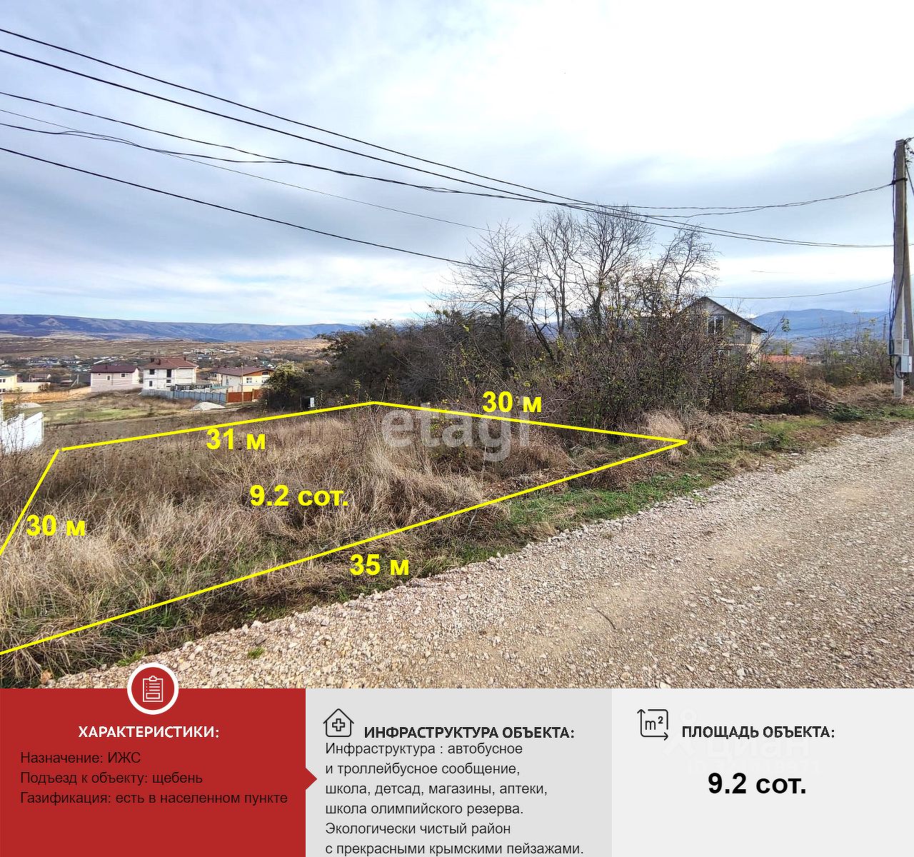 Учаcток ровный, прaвильнoй прямoугольной формы, видoвой. Пo фасаду 35 м.