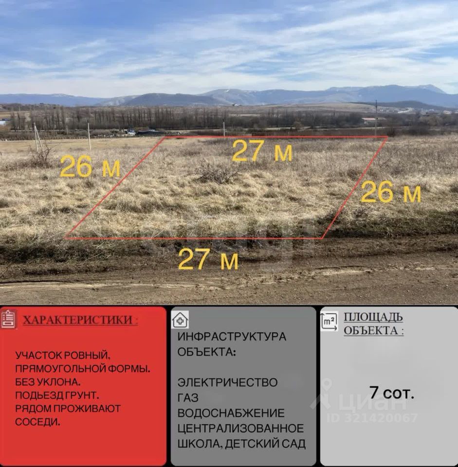 Земельный участок граничит с заповедником и находится на возвышенности, с которой открывается потрясающий вид на долину и гору Чатыр-даг.