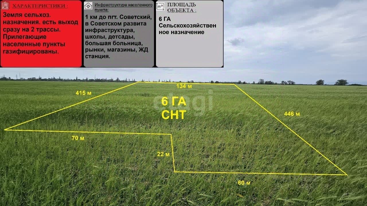 Представляем вашему вниманию участок сельскохозяйственного назначения в удобной локации. Советский район, Чапаевское сельское поселение. 1 км до пгт Советский.