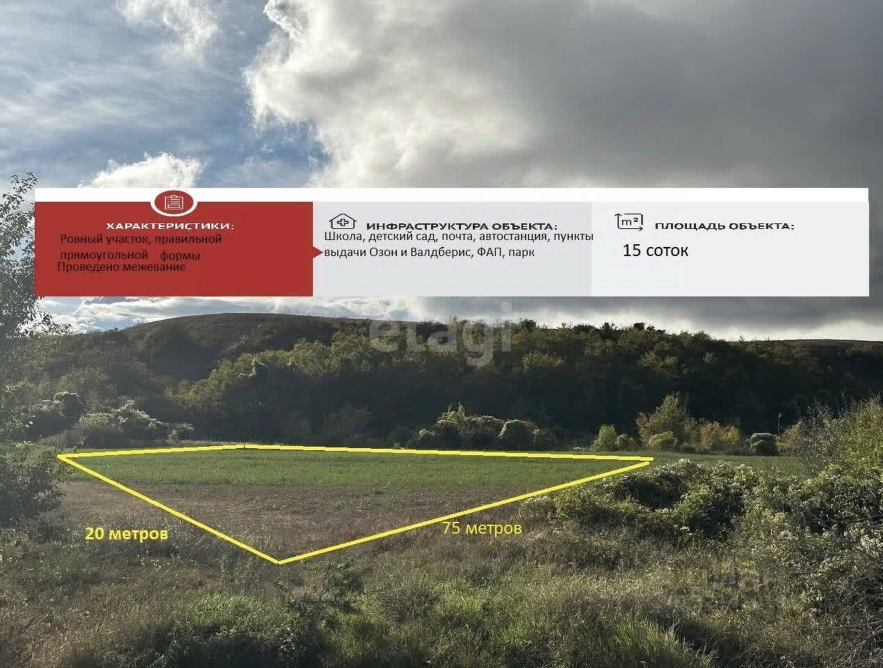 Вдали от городской суеты и шума. Участок имеет площадь пятнадцать соток и полностью готов к обработке. Здесь вы сможете построить свой собственный уютный домик и наслаждаться жизнью за городом.