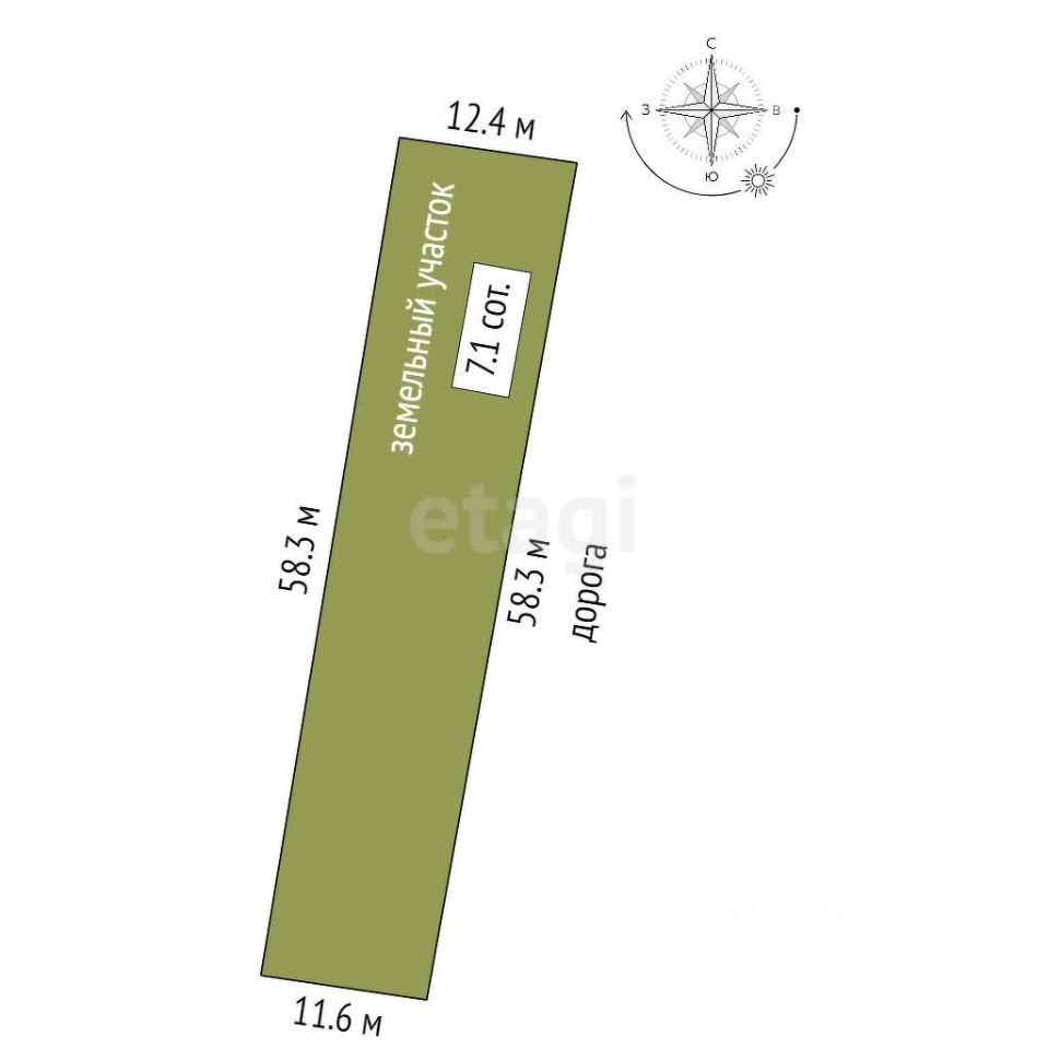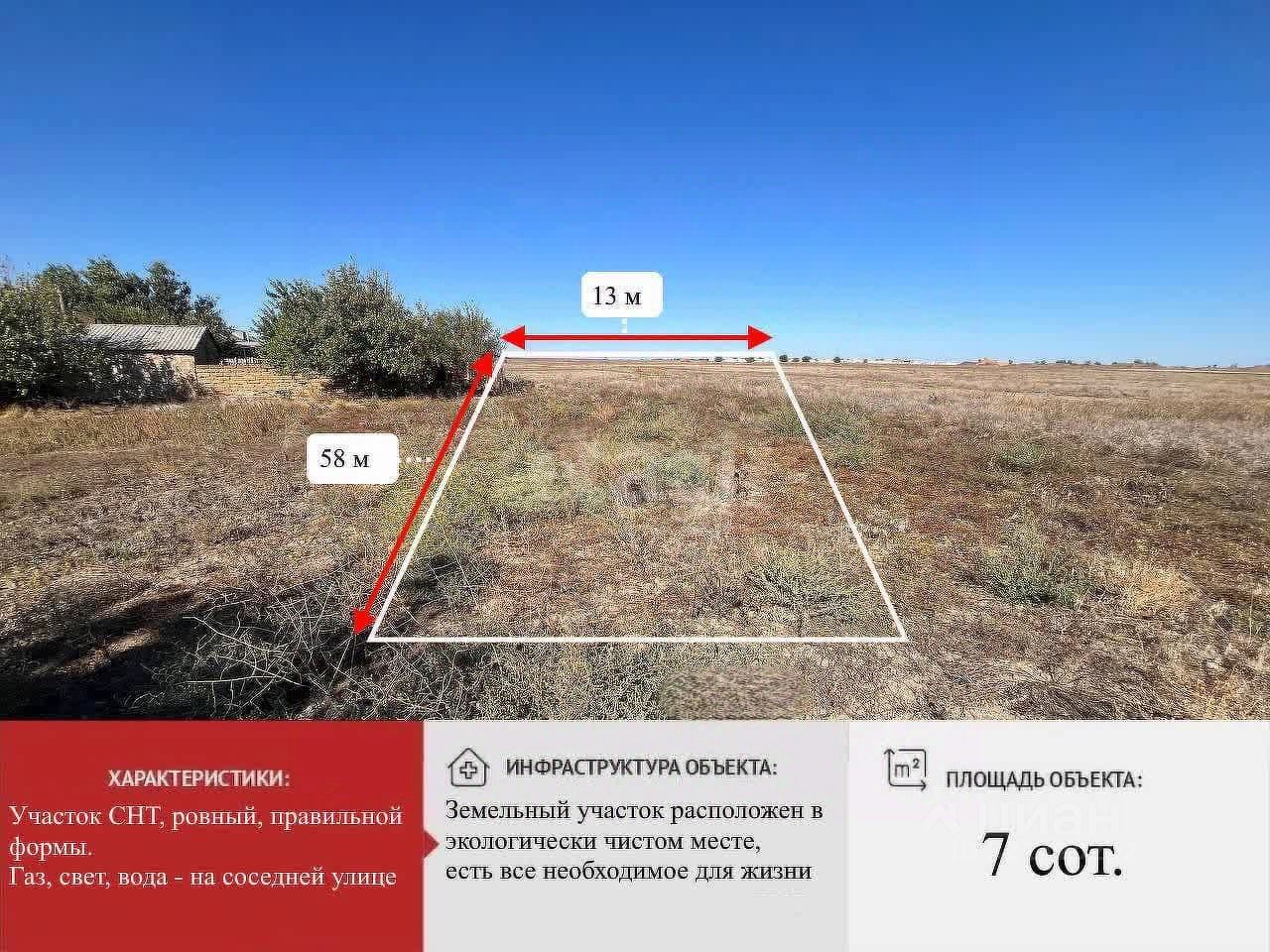 Земельный участок для ведения личного подсобного хозяйства площадью 7,1 соток, имеет правильную прямоугольную форму, размерами 12 м на 58 м, расположен в селе Харитоновка.