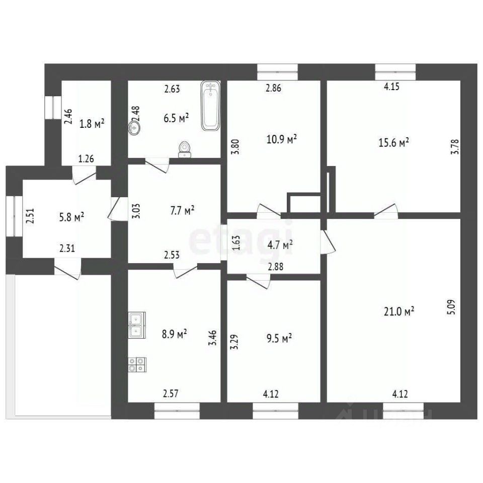 Площадь дома 117,2 кв.м., расположен на участке площадью 21,7 сотки. В доме 3 комнаты.