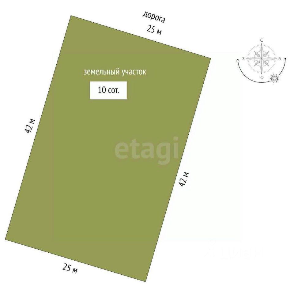 Участок угловой, имеет две фасадные стороны размеры которых составляют 25м. и 42 м.