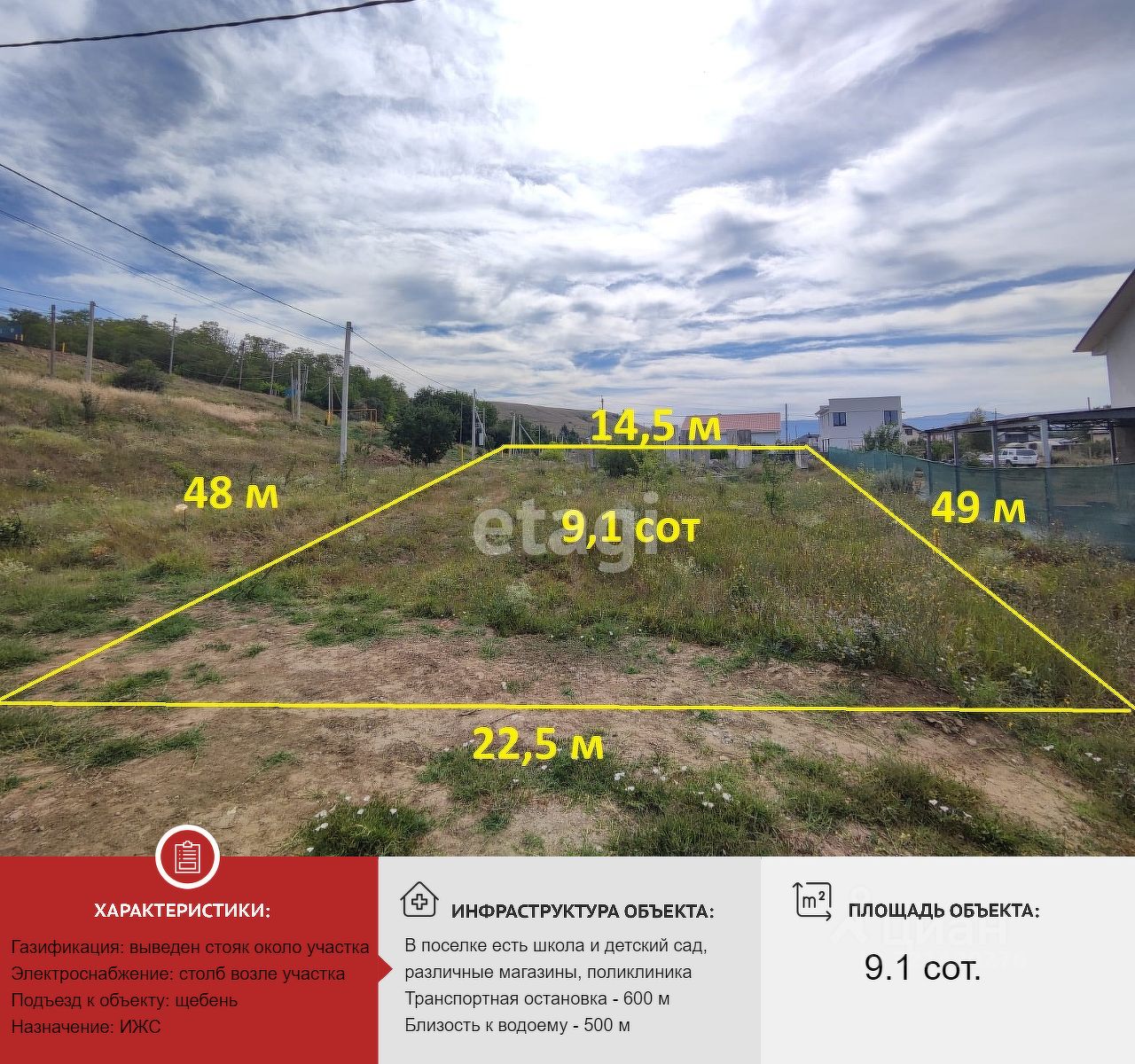 Инфраструктура: В пешей доступности находится транспортная остановка, обеспечивающая удобное сообщение с городом.В поселке есть школа и детский сад, что делает участок идеальным для семей с детьми.