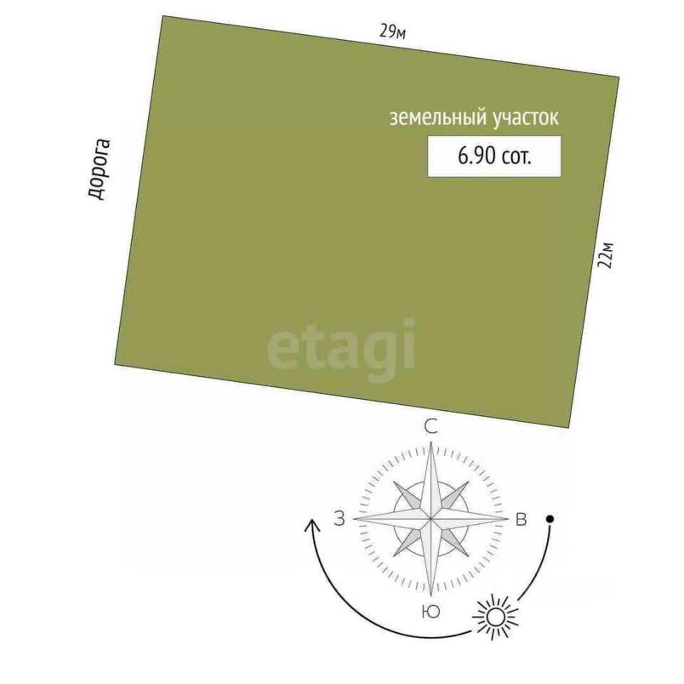 Продается земельный участок 6,9 сот., ИЖС, правильной прямоугольной формы.