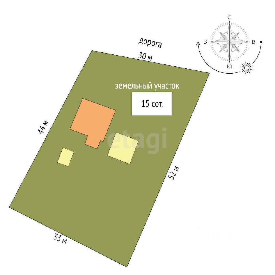 Площадь дома 67 кв.м., расположен на участке площадью 15 соток. В доме 3 комнаты, санузел также в доме. Во дворе летняя кухня и другие хозпостройки, также на улице есть туалет.