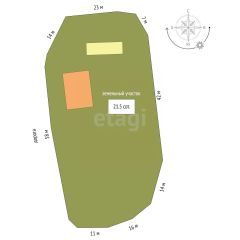 Участок с небольшим уклоном, угловой. На участке расположен гараж на две машины.