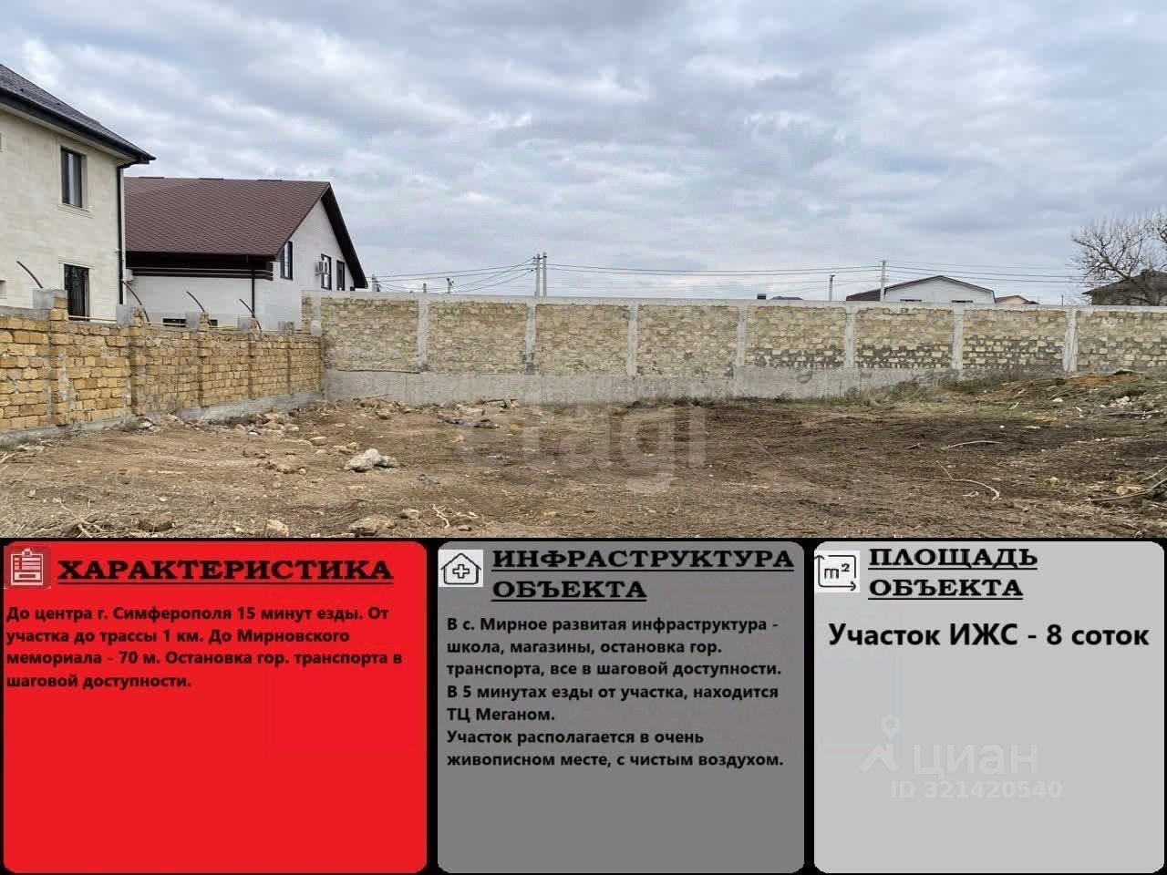 Предлагается к продаже участок, 8 сот., ИЖС, в с. Мирное, Симферопольского района.
