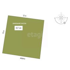Участок 10,7 соток, правильной, квадратной формы 32м. на 33м., в массиве Новозбурьевка.