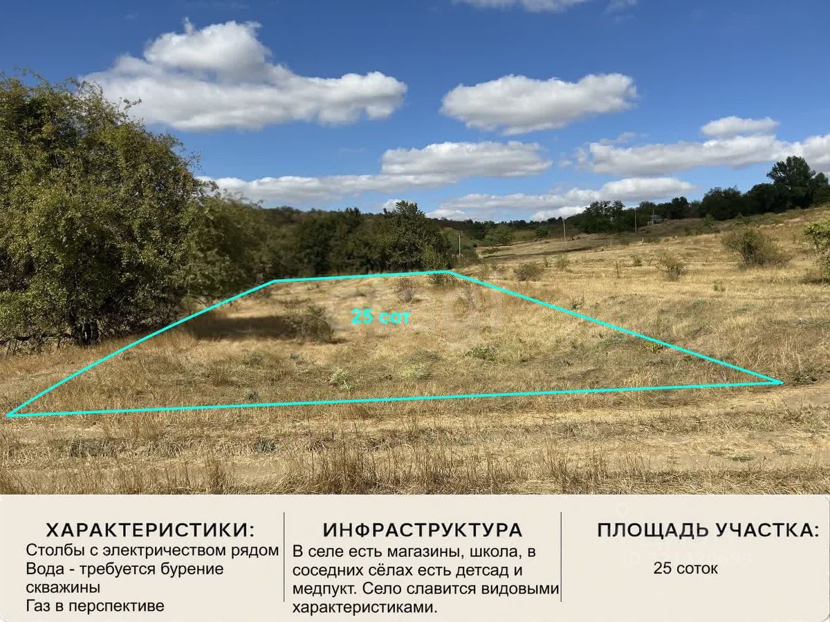 От г. Симферополя 20 км., от трассы "Таврида" 7 км. Участок ровный. Правильной формы. Участок с развитой инфраструктурой.