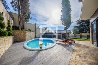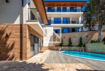 На благоустроенной территории расположены два отдельно стоящих дома, каждый с собственным бассейном, зоной барбекю и удобными подъездными путями. Пространство продумано до мелочей: современная архитектура и природная гармония дополняются максимальным комфортом, приватностью и панорамными видами. Бассейны оборудованы системой подогрева, противотоком, декоративной подсветкой и водопадом, а просторные зоны солярия с террасной доской создают идеальные условия для отдыха на свежем воздухе в любое время года.
