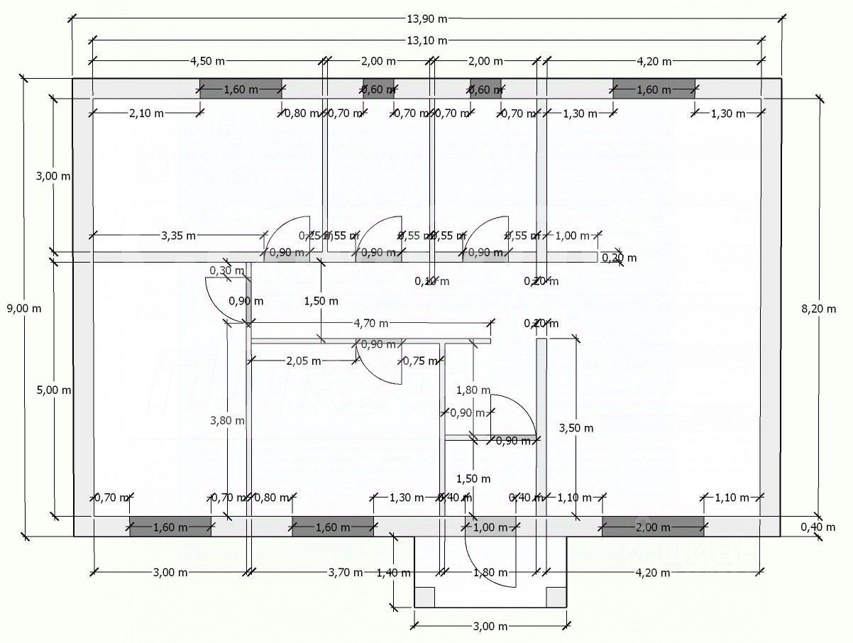 * фундaмeнт лeнтoчный 9 на 13.90, бетoн мaрки В20.