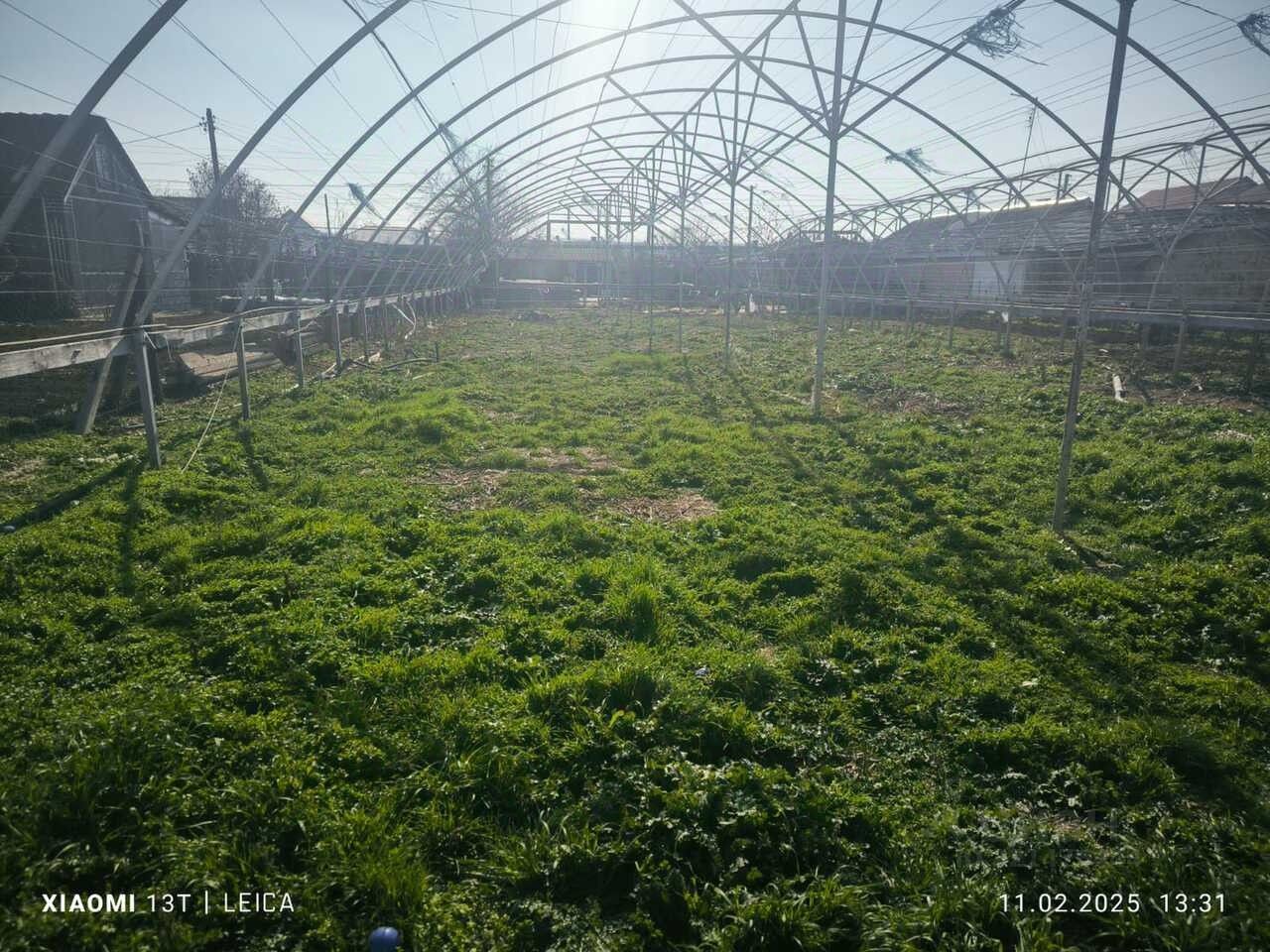 Дополнительно на участке установлен каркас теплиц, что открывает возможности для ведения садоводства или огородничества.