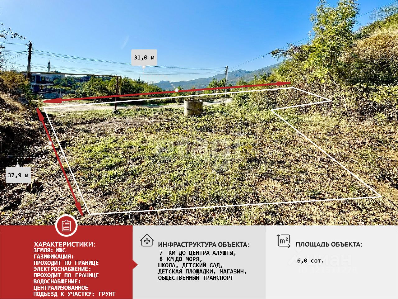 С участка открывается роскошный вид на горы, водохранилище и само поселение.