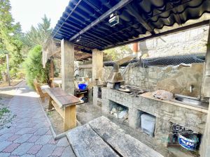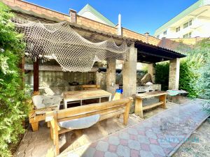На придомовой территории расположено: открытый бассейн (без подогрева),  зона барбекю с беседкой, детская площадка с песочницей и качелями, множество зелени: цветники и экзотические растения.
