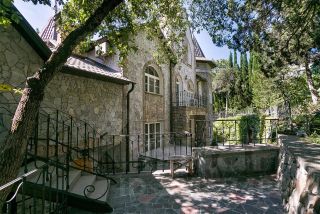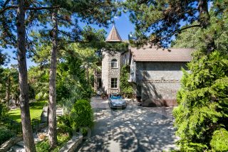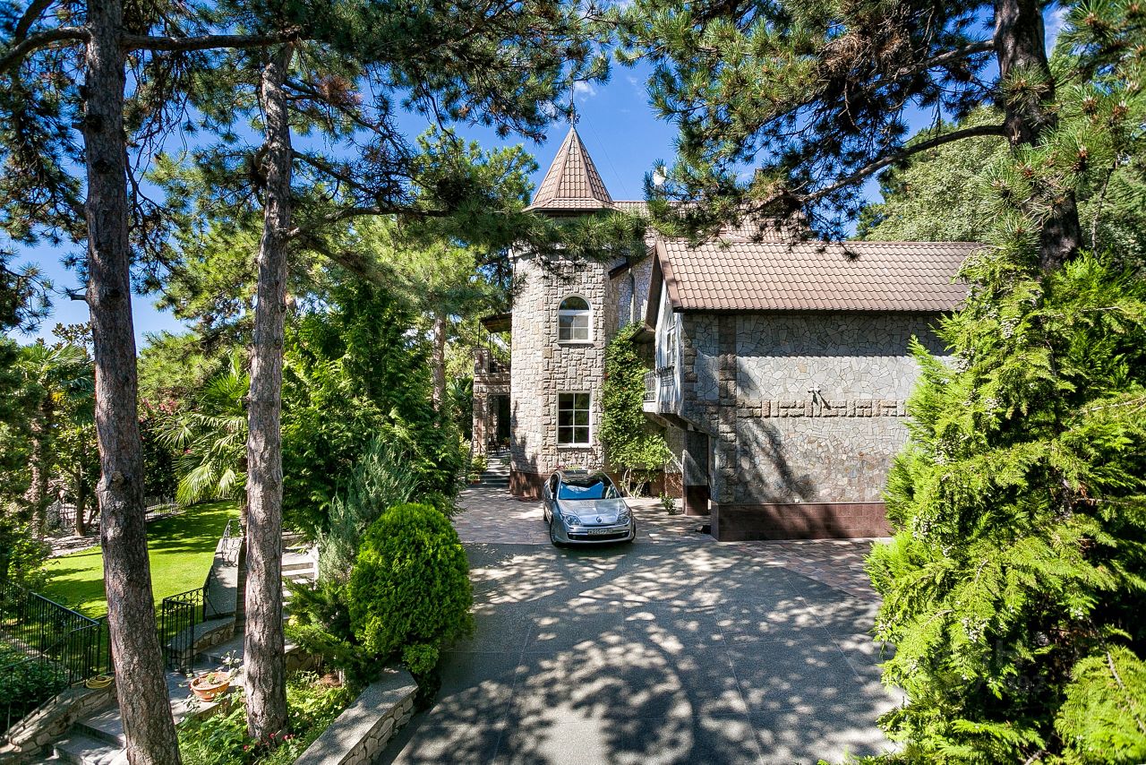 Продажа виллы в Ялте. Шикарный частный особняк построенный в виде старинного графского замка в элитном поселке среди реликтового соснового леса. Дом в элитном поселке Ялты, сосняк, подкупает своим уютом и респектабельностью. Дом пригоден для круглогодичного проживания и ожидает нового, представительного хозяина. Придомовая территория площадью 22 соток, грамотно и со вкусом спланирована. По всему периметру участка идут монолитные бутовые стены. На придомовой территории детская площадка, винный погреб, технические помещения, зоны отдыха и релакса, открытая парковка на 8 авто, гараж на два авто, большой плавательный бассейн водо вместимостью 82 куба, бассейн с постепенным уклоном разделен на детскую зону и плавательную зону для взрослых, установлена дополнительная чаша гидро ванной, над бассейном просторная лаундж зона с местами для отдыха, летней кухней и баром. Отдельно стоящий гостевой дом на первом этаже сауна с парилкой, просторный предбанник с массажными креслами действующим камином с медной вытяжкой. На втором этаже над сауной гостевые апартаменты 60 кв.м. Весь двор утопает в зелени, большая часть территории находится в тени под сенью исполинских крымских сосен, которых на участке более двух десятков, по мимо этого на участке в большом количестве произрастают туя, можжевельник, пальмы-форчуна, зеленые лужайки. Автоматизированная система полива.
