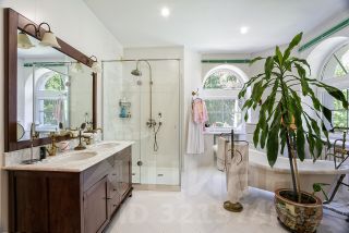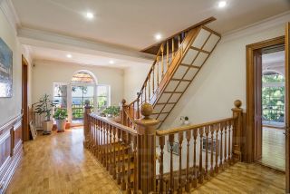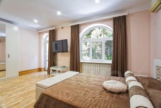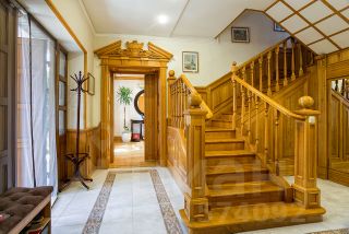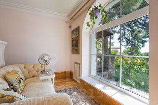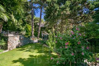 Особняк в Ялте введен в эксплуатацию в 2004 году, дом спроектирован и построен по индивидуальному архитектурному проекту. Фундамент железо бетонная плита, каркас и перекрытия железо бетонный монолит, полости заполнены природным камнем ракушкой в полный камень, облицовка дома выполнена редким и красивым Гаспринским камнем серого цвета с алыми прожилками. С северной стороны дома отдельный вход в комнату для персонала. Комната персонала состоит из кухни-студии с евро ремонтом и просторного сан узла. Комната полностью автономна. На первом этаже виллы в Ялте прихожая, отопительные котлы, кабинет, кухня-гостиная сан узел. На втором этаже виллы в Ялте две хозяйские спальни с выходами на балкон. Балконы ориентированы на север и юг. На балконах установлена садовая мебель, с балконов открывается вид на море и хвойный лес. Так же на втором этаже расположен сан узел и душ, изысканная просторная ванная комната, большой встроенный шкаф и детская комната. Третий этаж комната отдыха-Бильярдная, спорт зал. Лестница между этажами выполнена из натурального массива дерева. Дом изумительный не имеет аналогов в Крыму, идеально подходит для частной резиденции для круглогодичного проживания или для сезонного отдыха в сосновом реликтовом лесу в окружении тишины, респектабельности и комфорта. Достаточно увидеть этот дом и в него невозможно не влюбится с первого взгляда.