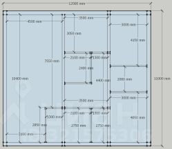 кухня-гостиная 43 м2; прихожая 6 м2; холл 11 м2; гардеробная 5 м2; три изолированные спальни (12 +12 +11 м2); два санузла 5 м2 и 4 м2; котельная 6 м2.