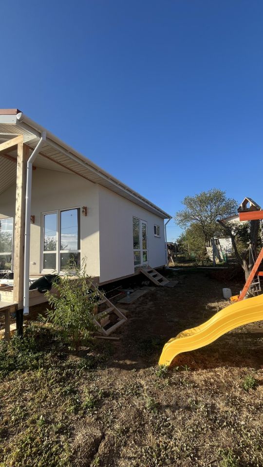 Продам НОВЫЙ уютный и светлый дом 2025 года постройки площадью 49.8 м2,зарегистрирован в ЕГРН как жилой дом , что дает возможность постоянной регистрации,расположен на участке 6 соток ,г.Феодосия ,СПК Мелиоратор,это развивающийся район г.о.Феодосия,особенно понравится тем ,кто любит отдых на природе ,сад,огород и хочет отдохнуть от шума города .Ходит общественный транспорт,главная дорога асфальтирована,продуктовые магазины,аптека в шаговой доступности.До центра города 15 минут на машине ,для школьников отдельно ездит автобус,сады так же в 15 минутах езды .