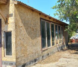 К дому пристроен навес ,который остеклен и можно использовать как уютную веранду по своему вкусу..