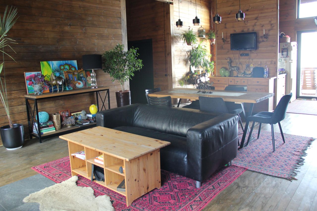 • Дом построен из деревянного бруса и оснащён панорамными окнами (Алюминиевое остекление в цвете "БлэкФлейм", закаленное стекло в ст/пакетах), позволяющими наслаждаться видами на горы и море. Крыша односкатная, высота потолков от 3-4,3м.