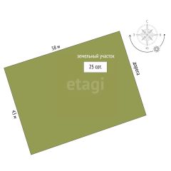 Площадь дома 81,2 кв.м., участка 25 соток (находится в собственности).