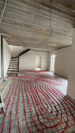 -Теплые полы на первом этаже, проведена канализация и электрика.