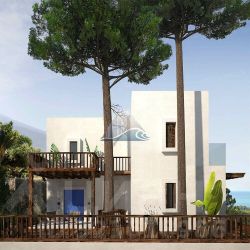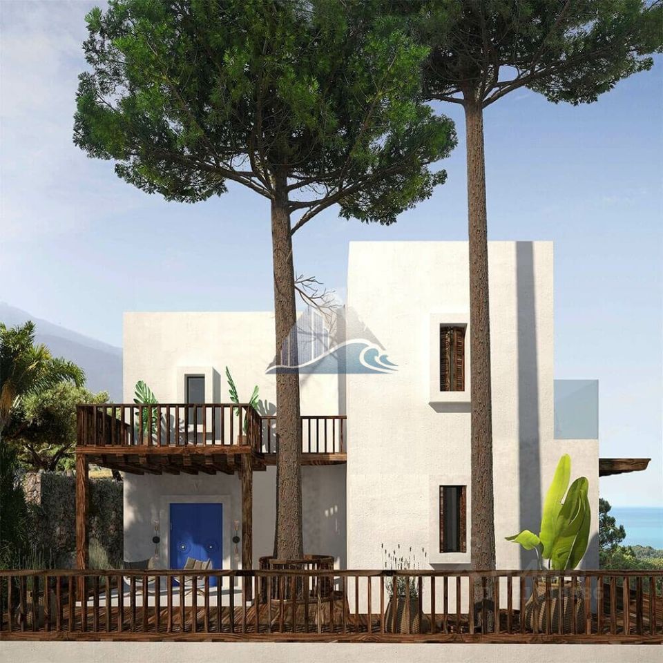Архитектура виллы близка к средиземноморскому стилю, её белые скульптурные формы, изредка прорезанные стеклом, подчеркнуты деревянными карнизами и ставнями. В основе дома железобетонный монолитный каркас с кирпичным заполнением стен.