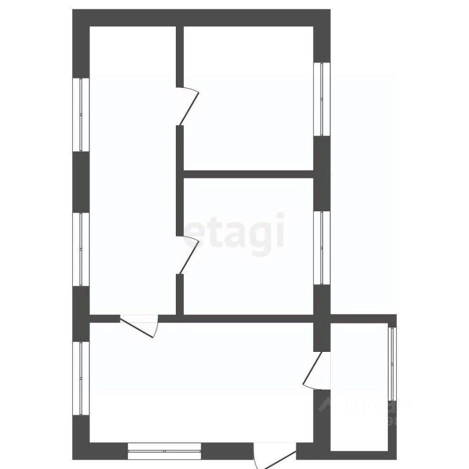 Планировка включает две изолированные комнаты, компактную кухню и совмещенный санузел.