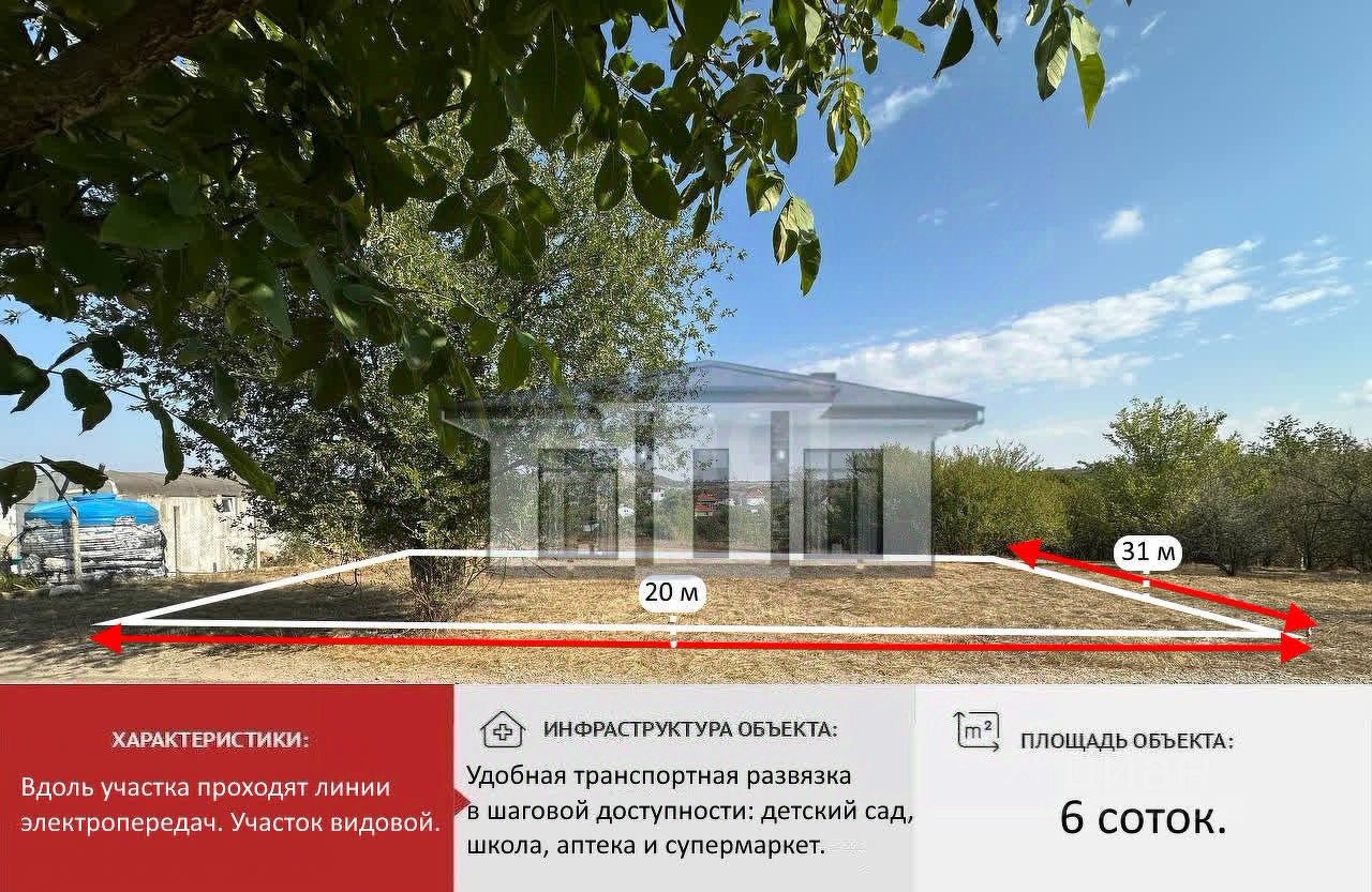 Земельный участок, площадью 6 соток, расположен в СТ "Родничок" Чистенского сельского поселения, вблизи границы Симферополя, что обеспечивает баланс между загородным спокойствием и городскими удобствами. Участок имеет четко обозначенные границы, вдоль одной из которых проходит линия электропередачи, что минимизирует затраты на подключение к электроснабжению. Документы полностью соответствуют законодательству РФ, гарантируя прозрачность и безопасность сделки.