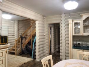 Дом из оцилиндрованного бревна был возведен по индивидуальному проекту, что гарантирует его уникальность и продуманность до мелочей.