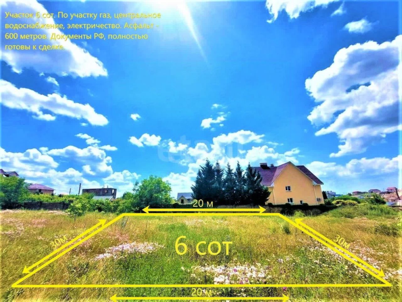 Участок площадью 6 соток расположен в поселке городского типа Молодёжное, в зоне сложившейся жилой застройки. Земельный участок имеет правильную прямоугольную форму с размерами 20 на 30 метров, что обеспечивает рациональное и удобное планирование будущего строительства. Территория ровная, ухоженная, частично огорожена, что обеспечивает четкое определение границ. Ключевым преимуществом является наличие всех необходимых коммуникаций по границе участка: электричества, газа а также водопровода, что значительно сокращает затраты и время на подключение. Подъездная дорога отсыпана щебнем, а в 200 метрах находится асфальтированное дорожное полотно.