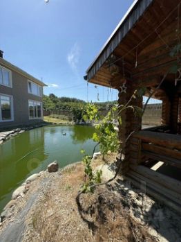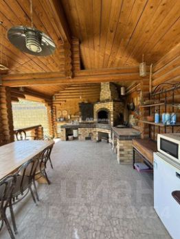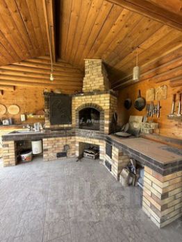Отдельно стоящая беседка из оцилиндрованного бревна 24 кв. м. (стол на 8 человек, мангал, разделочный стол, печка, тандыр, коптильня холодного копчения). Вода горячая и холодная, канализация, мойка.