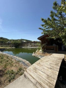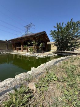 Пруд на 150 куб. м. воды, живут рыбы и раки. Стоит система фильтрации и циркуляции воды.