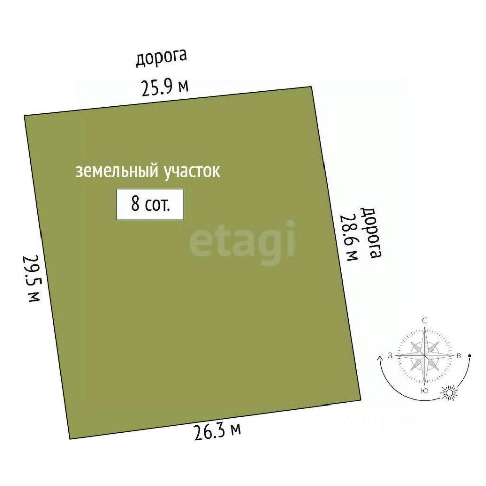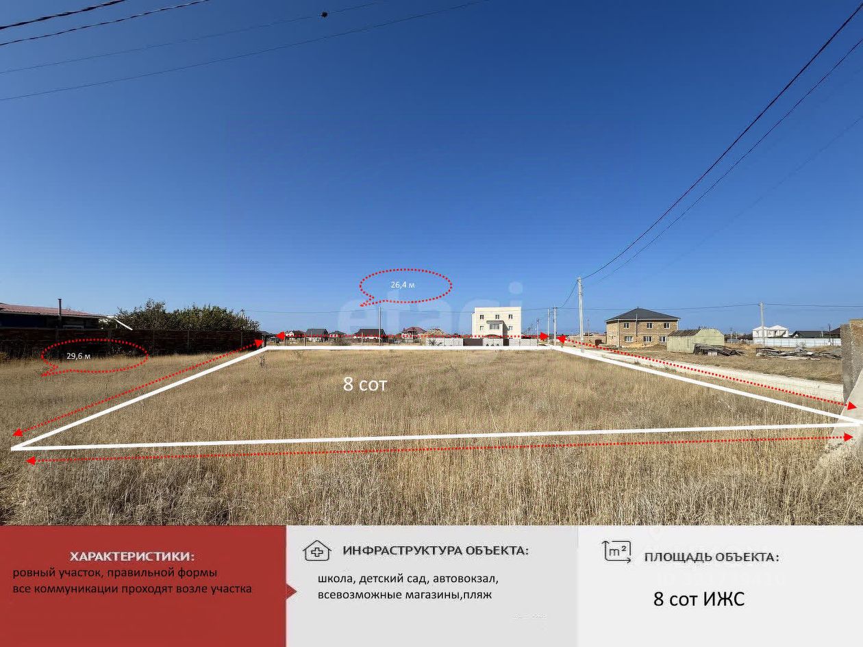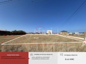 Участок 8 соток , ИЖС, имеет правильную , ровную форму , без уклонов. Коммуникации на участок не проведены. Соседи уже строятся.