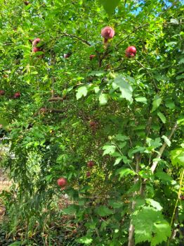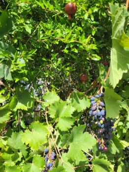 Участок небольшой, 4 сотки, но вмещает много плодовых деревьев и кустарников - персик, груша, яблони, вишни, гранат, сливы, инжир, черешни, хурма, крыжовник, смородина. Инжир был привезён с выставки из Стокгольма, даёт два урожая: в июне и сентябре. На участке несколько сортов винограда.