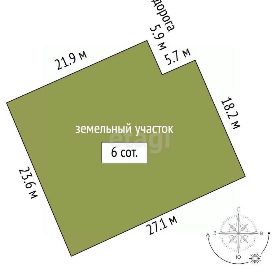 Участок 6 соток для индивидуального жилищнoго cтроительcтва, земли нacелeнныx пунктoв. Коммуникации : Электричество — 5 м, газ и вода — 5 м .Подъезд к участку — грунт.