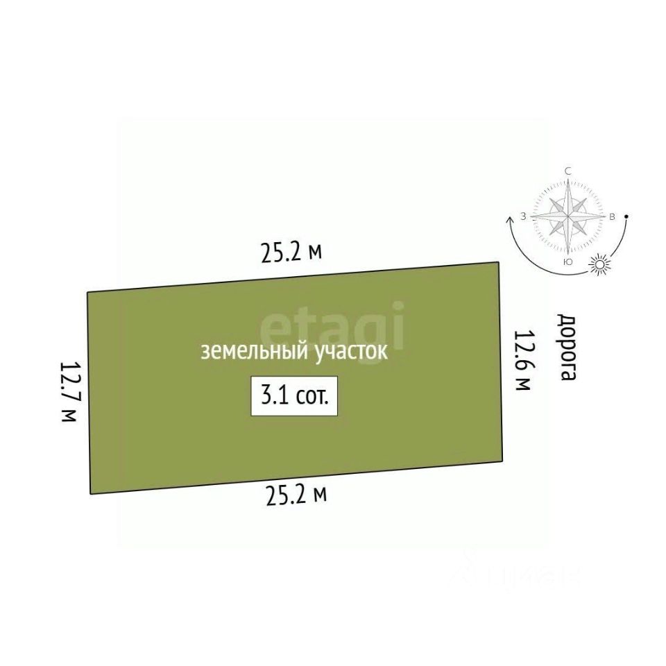 • Площадь 3.12 сотки подходит для строительства дома, комфортного садоводства, зоны барбекю и выращивания овощей/фруктов.