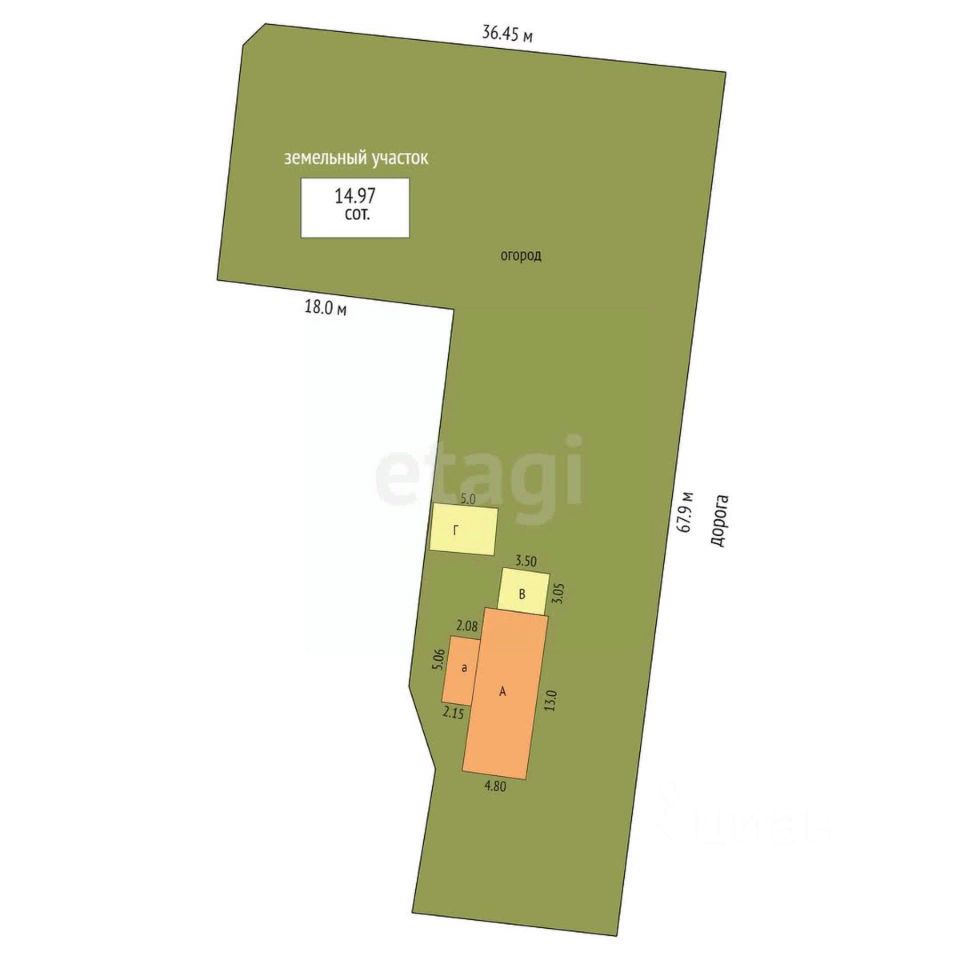 Участок имеет ровную поверхность. На участке имеются хозяйственные постройки и небольшой дом под снос.