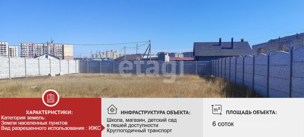 Участок площадью 6 соток. Категория земель: Земли населенных пунктов. Вид разрешенного использования: для индивидуального жилищного строительства.