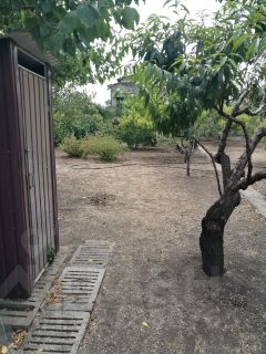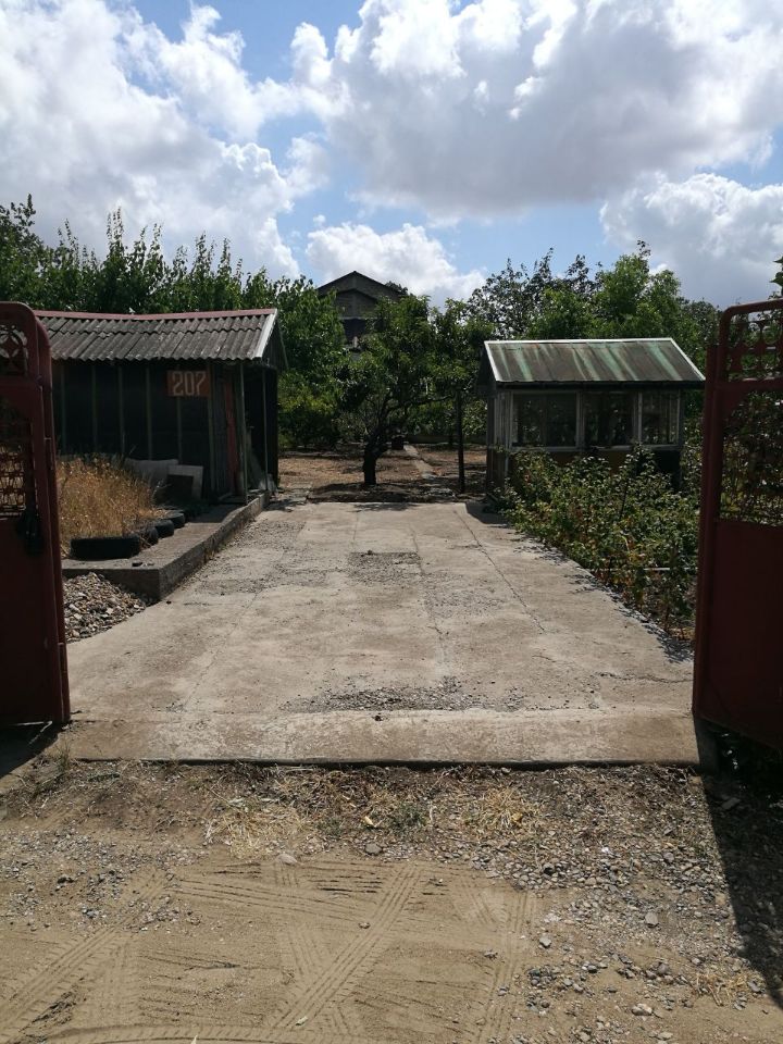 Участок 5 соток, прямоугольной формы. Использовался как дача, ухоженный. Есть сторожка (будка) и постройка с бочкой для воды. Растут плодовые деревья (персик, вишня, яблоня, абрикос) и кустарники (крыжовник, смородина, малина, виноград).