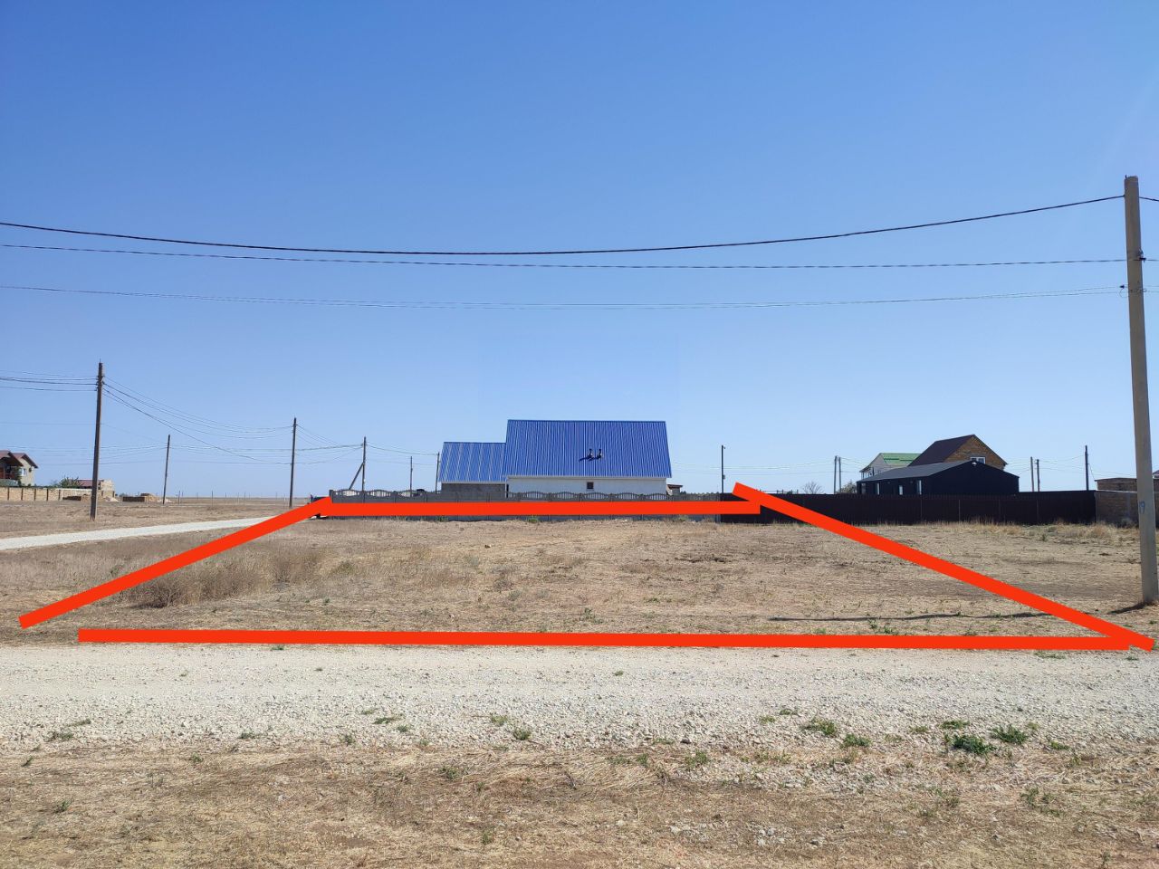 Участок угловой, что увеличивает место для парковки возле забора, на случай если будете делать гостевой дом (65 метров парковки). Так же удобно ходить на море - по прямой. Не нужно обходить чужие дома.