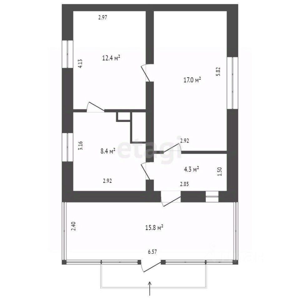 В доме имеются 2 жилые комнаты площадью 15,9 и 11 кв. метров, кухня площадью 8 кв. метров и просторная веранда площадью 11,2 кв. метров.