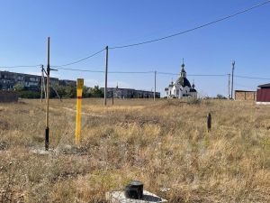 Участок ровный, прямоугольной формы, без ям и насаждений, по границе участка проходит: электричество и газопровод.
