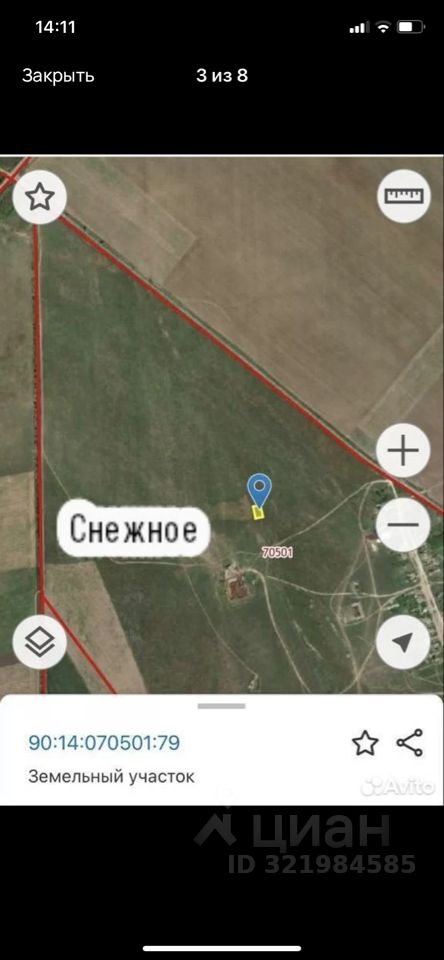 Продается земельный участок в с.Снежное, Черноморского района, кадастровый номер 90:14:070501:79, газ в село проведен, до моря 3 км. Собственник.